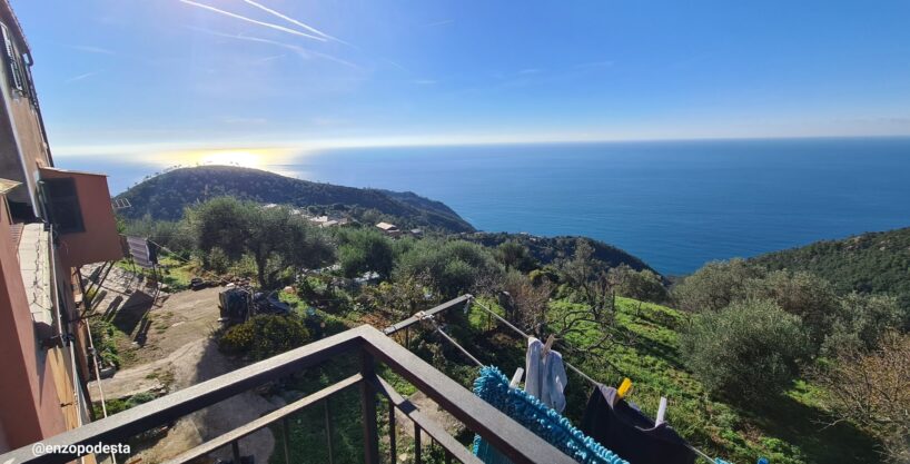 Reggimonti frazione di Bonassola. Una casa con una vista mare incantevole. Si tratta di una casa semi indipendente, ovvero libera su tre lati con cortile e giardino, di vani 5,5 Vani catastali.