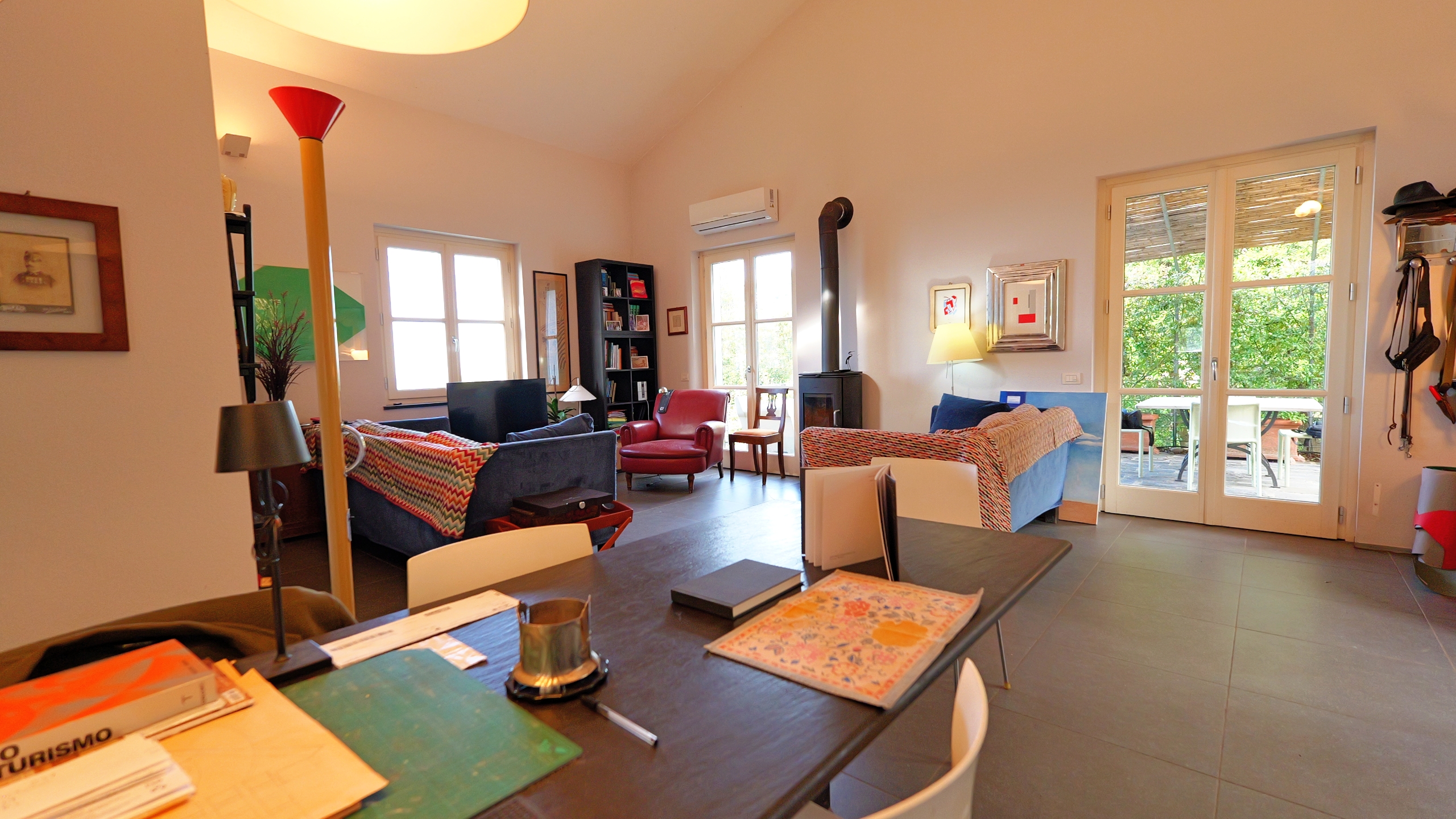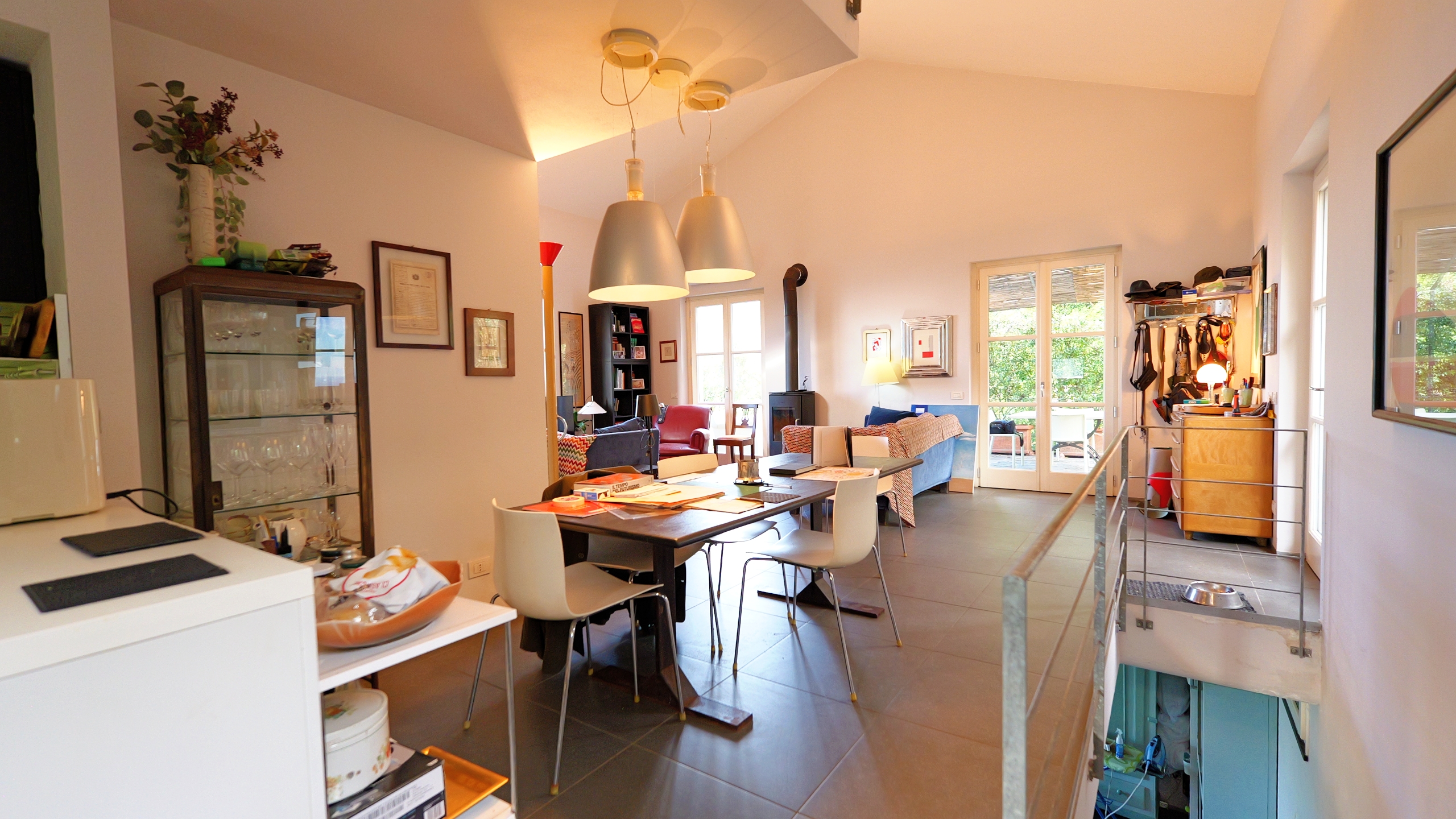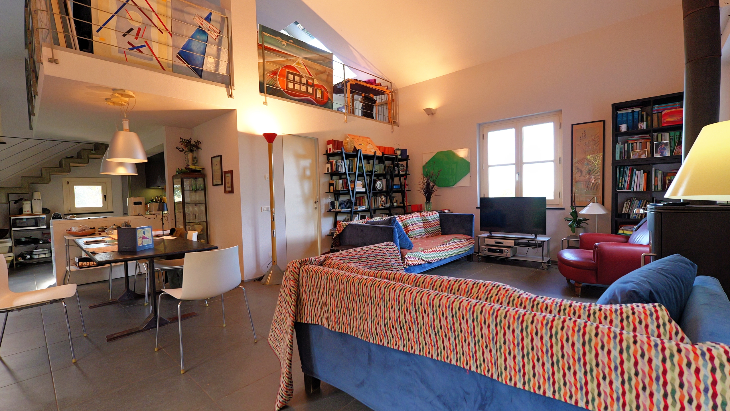 Una posizione quindi decisamente discreta e riservata.La Villa si sviluppa su due livelli:al primo piano troviamo un ampio soggiorno con angolo cottura,una camera e ed un bagno, oltre che ad una zona studio soppalcata.