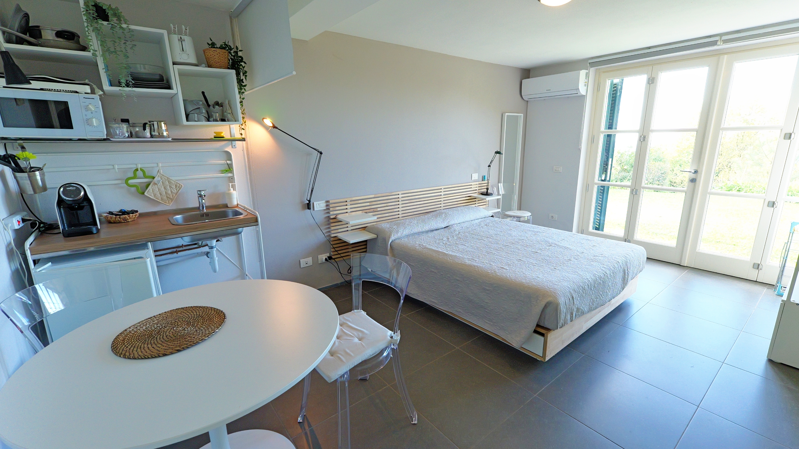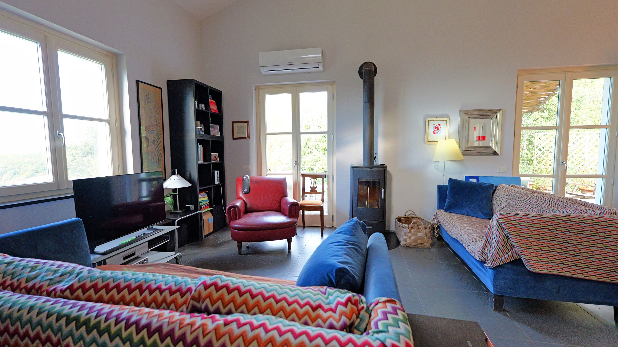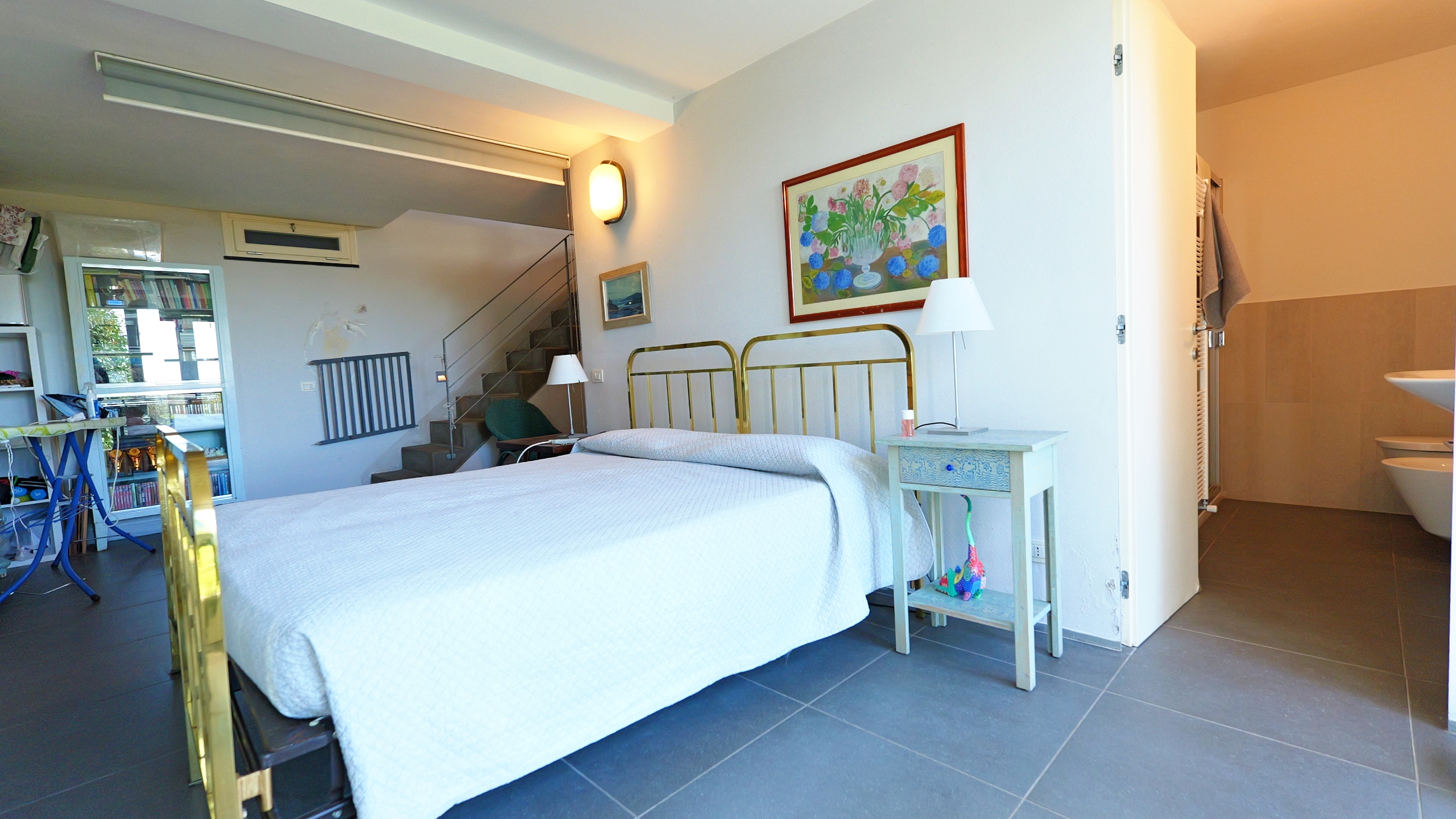 Una posizione quindi decisamente discreta e riservata.La Villa si sviluppa su due livelli:al primo piano troviamo un ampio soggiorno con angolo cottura,una camera e ed un bagno, oltre che ad una zona studio soppalcata.